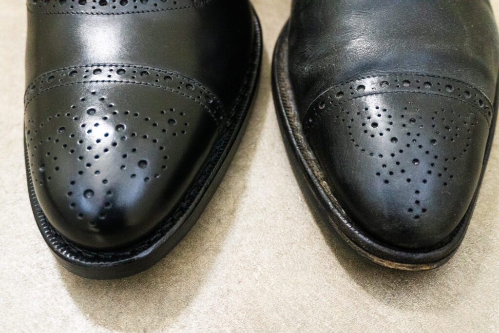 つま先部分のメダリオンもデザインが違い、ユナイテッドアローズ別注の方がやや穴が大きいです。